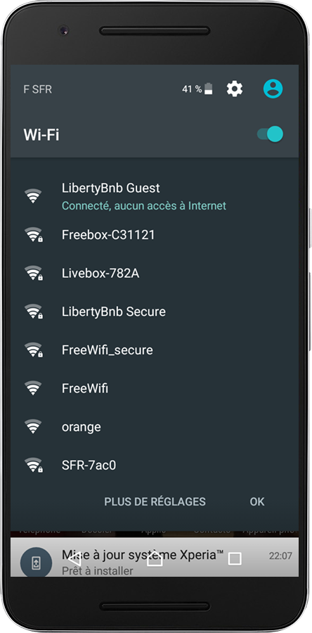 Le cliest n'a plus besoin de clé pour se connecter au Wifi, il trouve tout seul le réseau de votre enseigne et s'y connecte. Par défaut, le système Wifiz crée un réseau Wi-Fi supplémentaire protégé par mot de passe pour vos employés ou votre système de point de vente, ce qui garantit que les visiteurs ne pourront pas accéder à des périphériques importants.